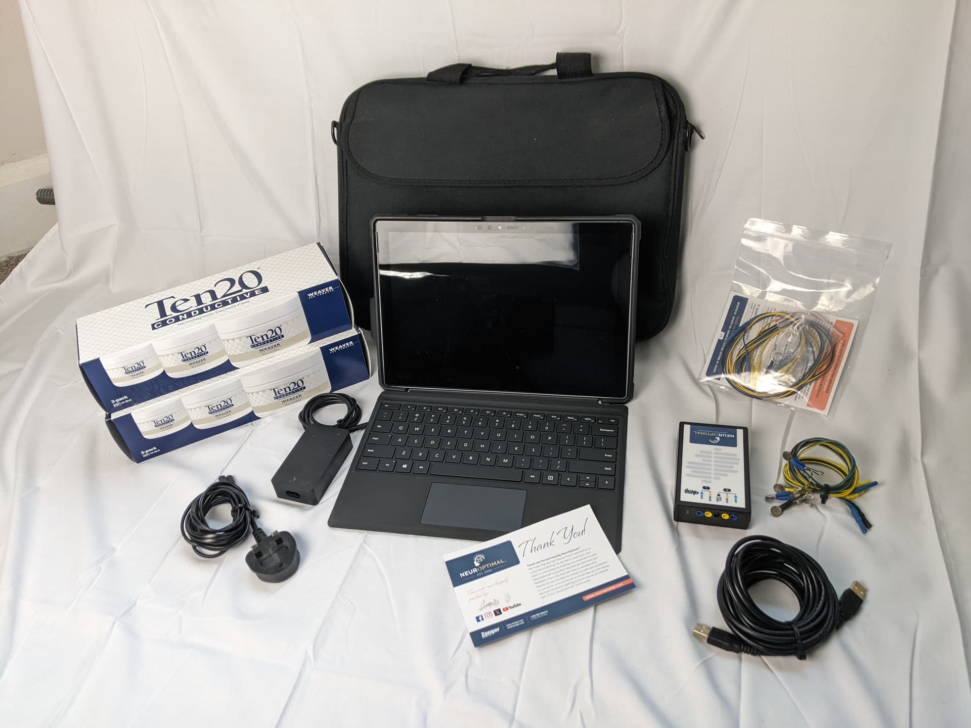 As well as the NeurOptimal carrying case, a sturdy, luggage-style protective carrying case is included, designed to house the main laptop/tablet and all accompanying parts securely, with a dedicated pocket for accessories.