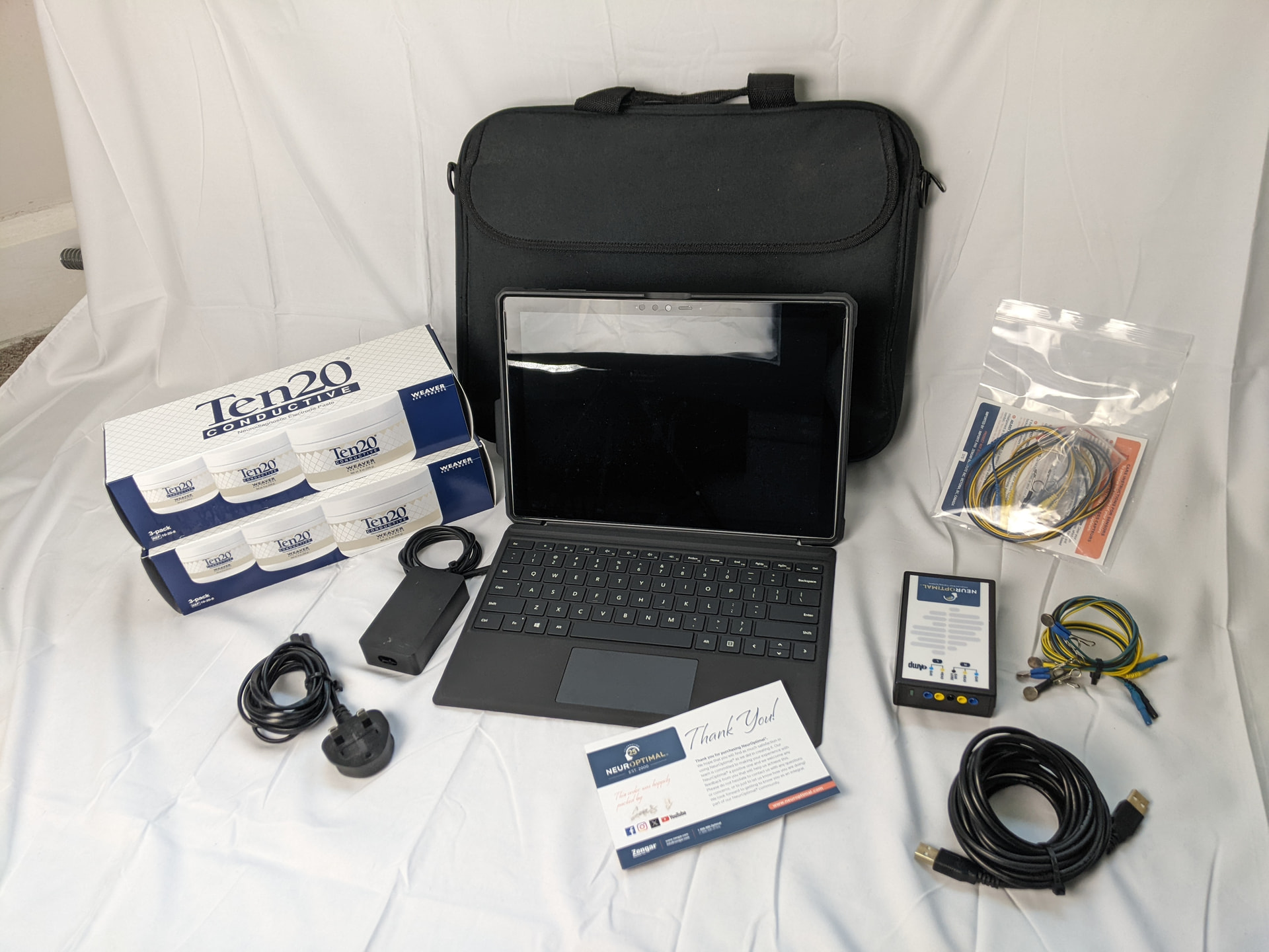 As well as the NeurOptimal carrying case, a sturdy, luggage-style protective carrying case is included, designed to house the main laptop/tablet and all accompanying parts securely, with a dedicated pocket for accessories.